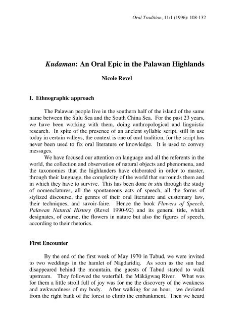 Kudaman An Oral Epic In The Palawan Highlands Oral Tradition